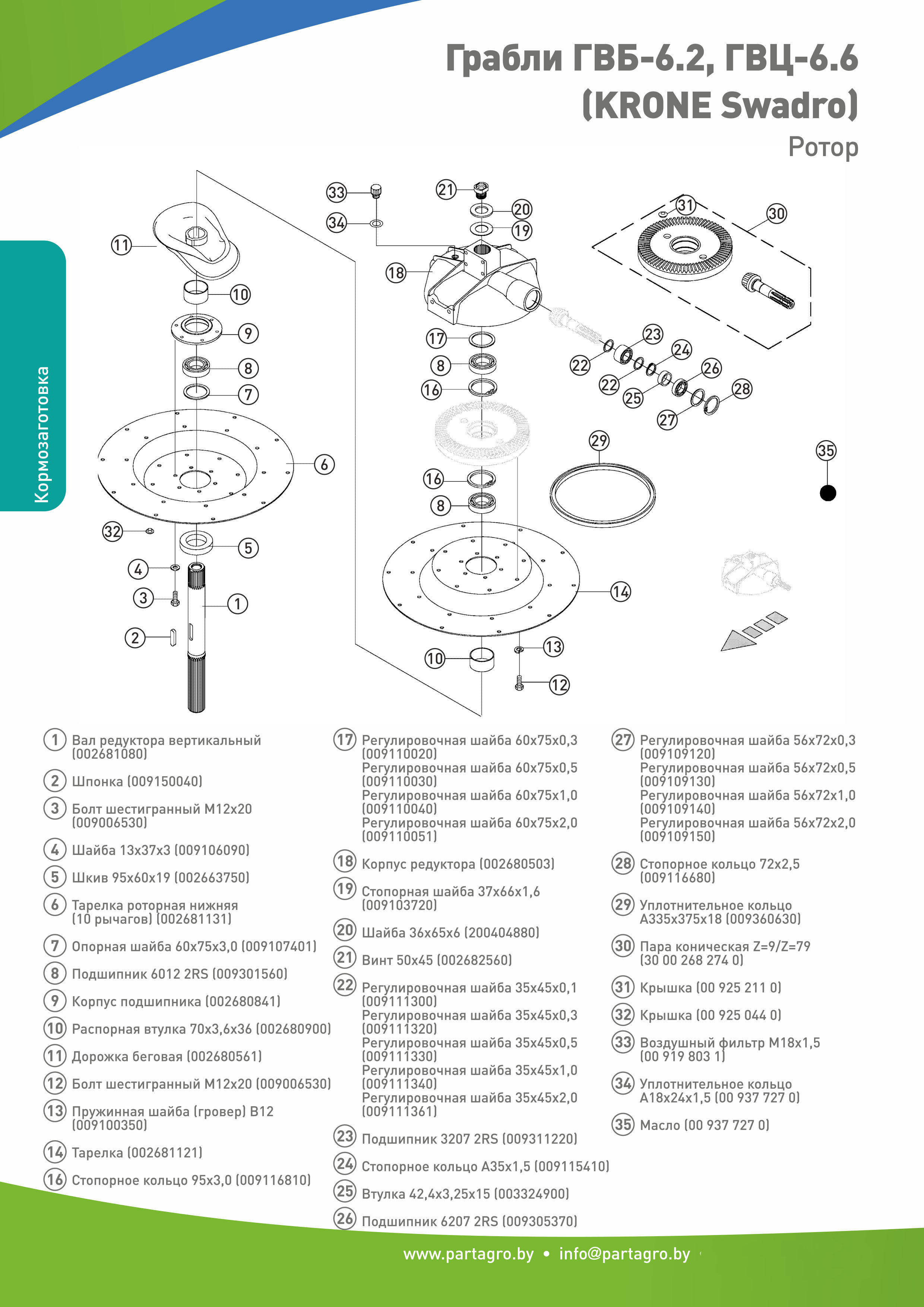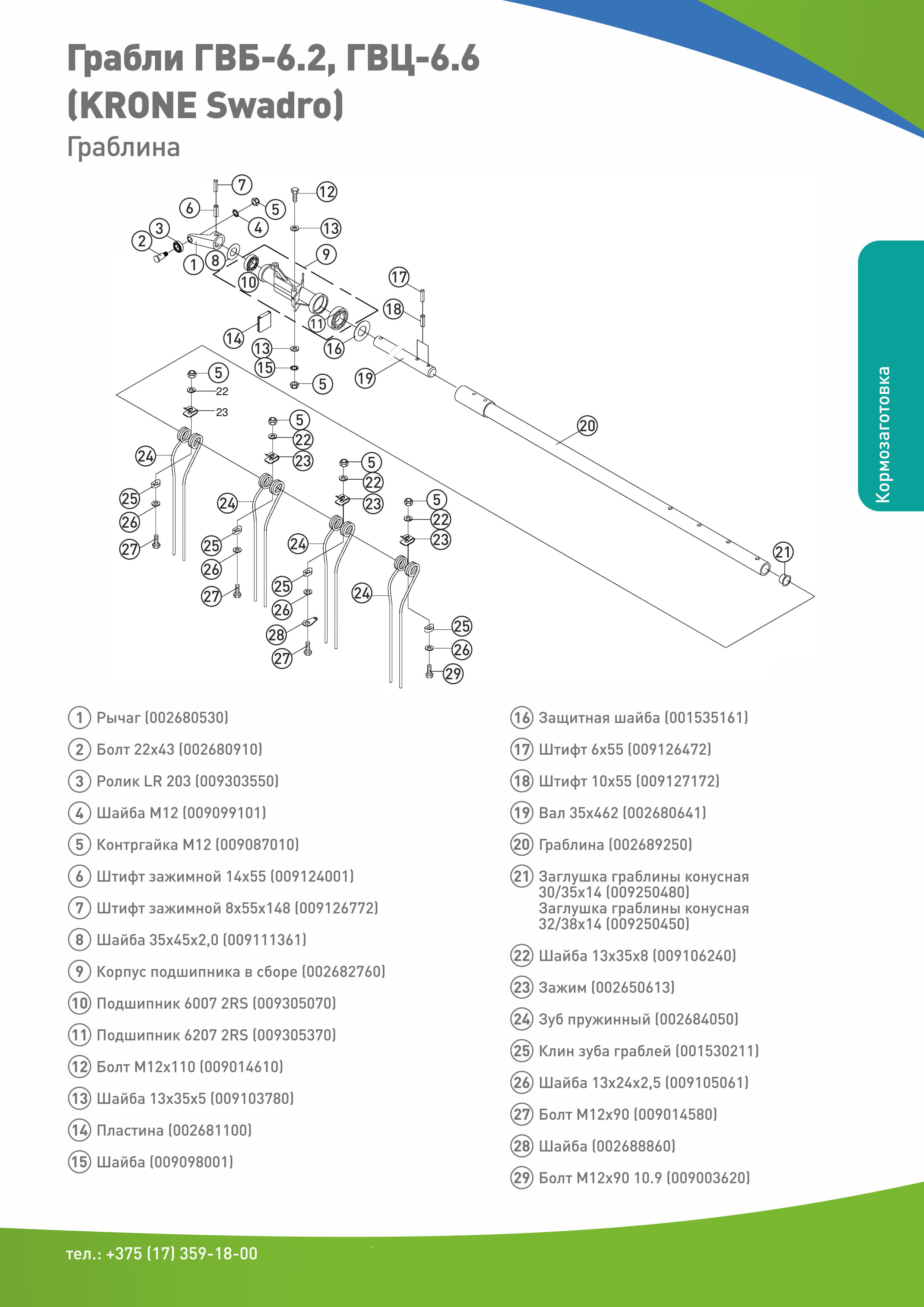Запчасти для Граблей-валкообразователей Krone Swadro - ГВБ-6,2, ГВЦ-6,6
