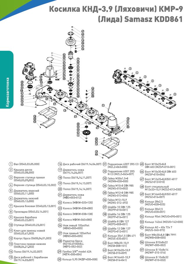 Запчасти для Косилок КНД-3,9 (Ляховичи), КМР-9 (Лида), SaMASZ
