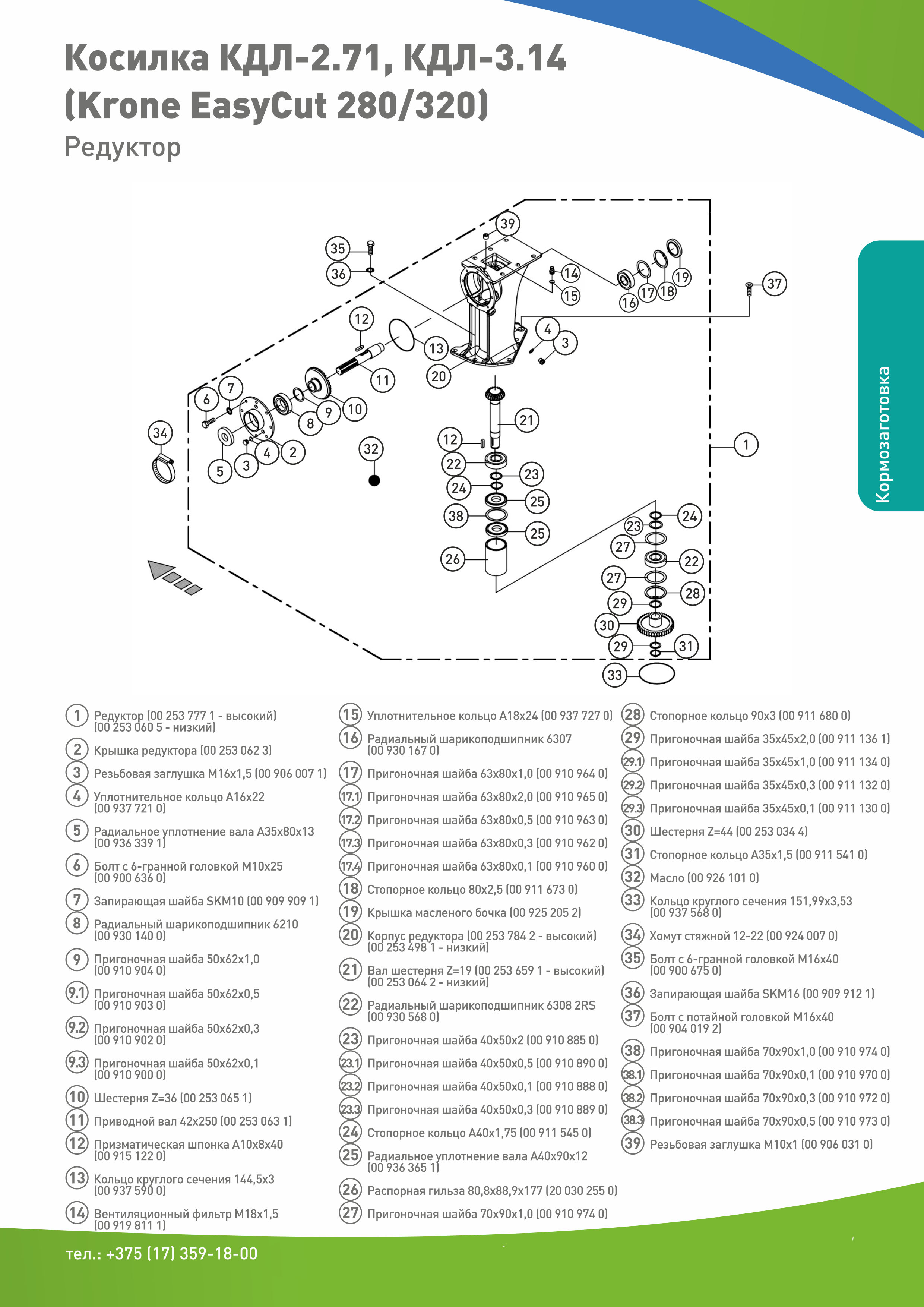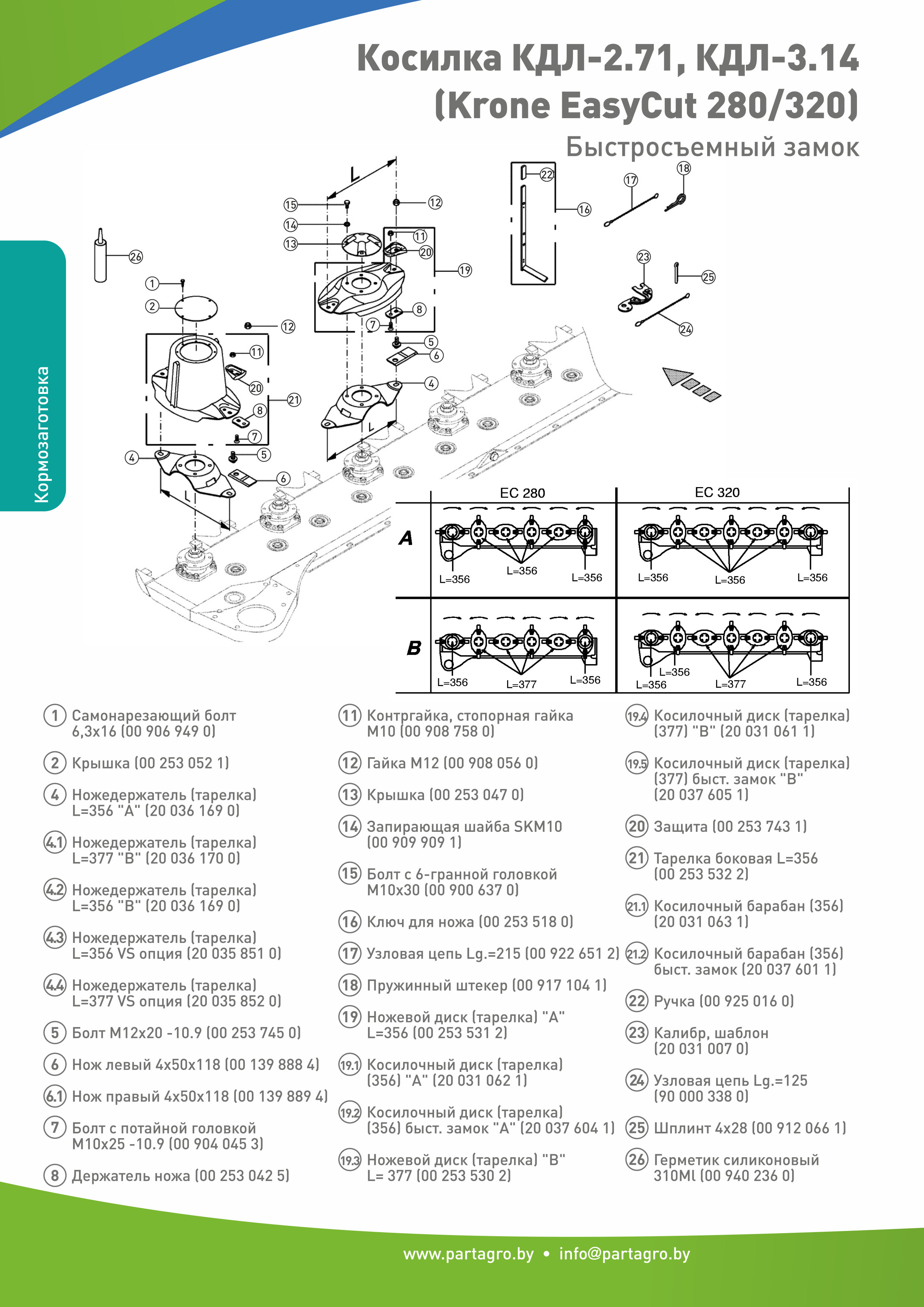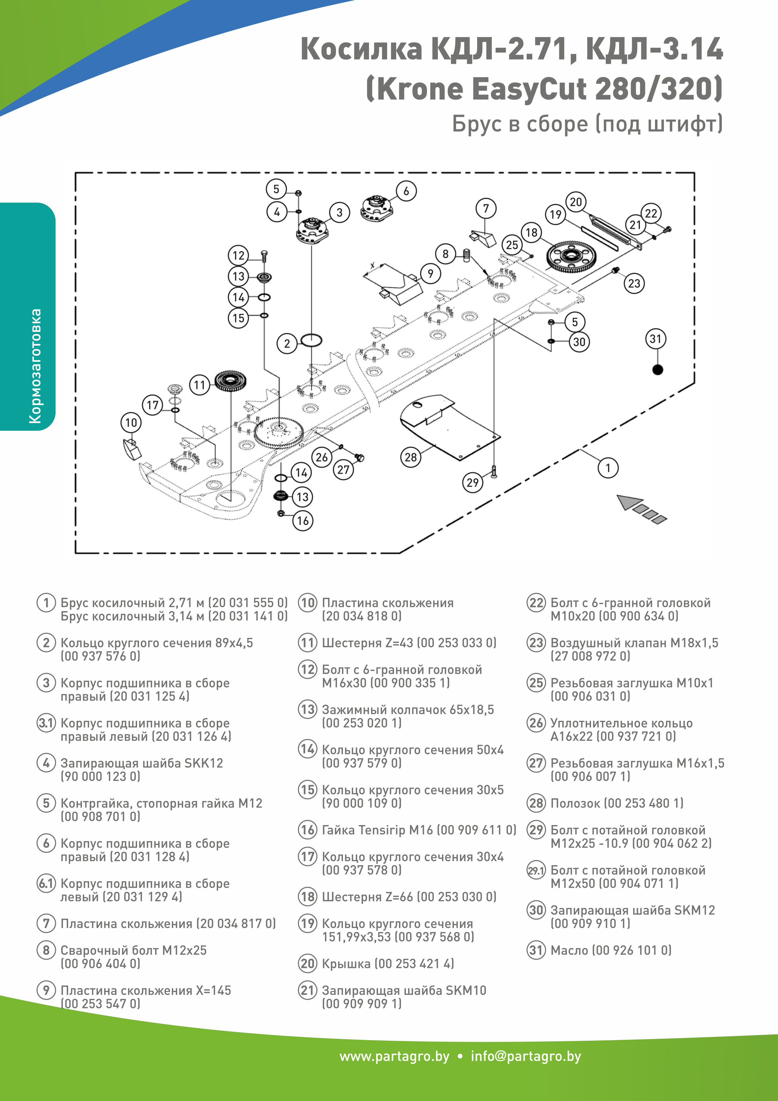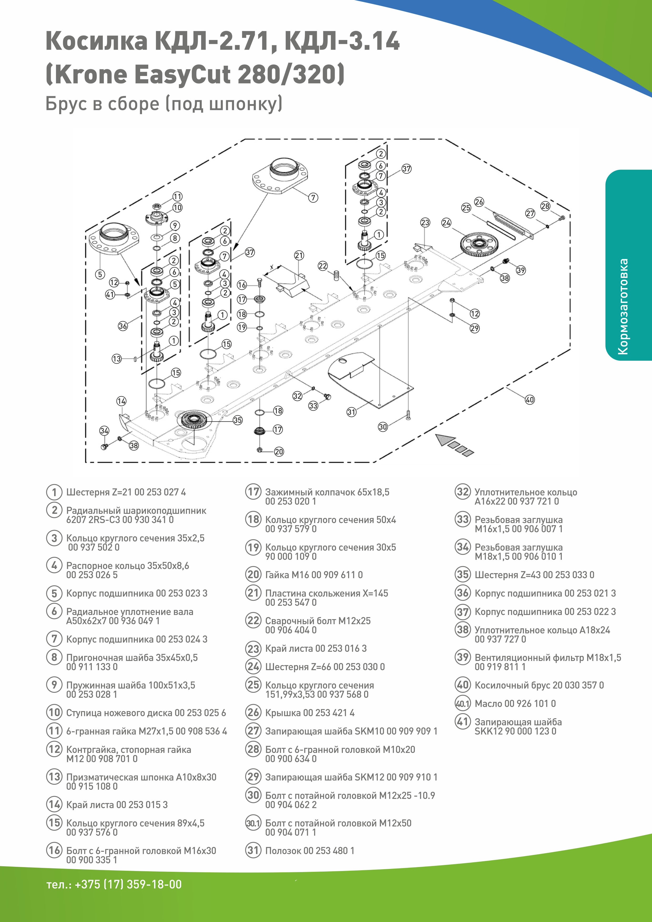 Запчасти для Косилок Krone EaseCut (КДЛ Лида)