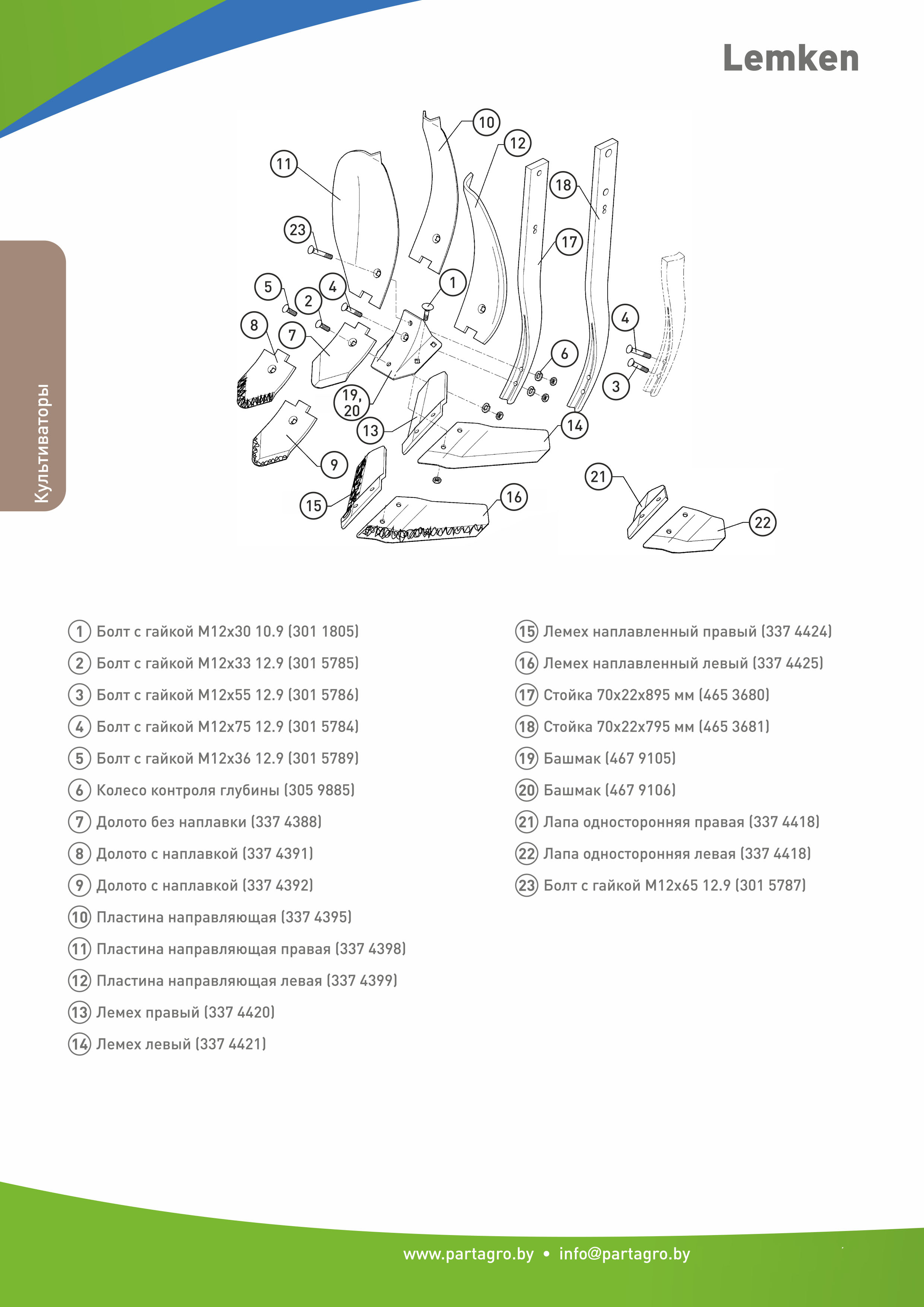 Для поддержания безупречной работы агрегата необходимы оригинальные комплектующие. В нашем каталоге представлены все детали для культиваторов Lemken: лапы, зубья, пружинные стойки, диски, катки, подшипники и элементы привода. Гарантия 100% соответствия OEM. Удобный поиск по артикулу, отгрузка со склада в Минске или в вашем регионе.
